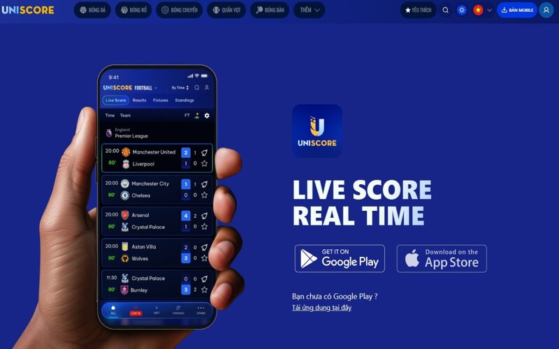 Uniscore Live Score còn cung cấp tính năng thông báo theo thời gian thực, giúp người dùng nhận được thông tin nhanh chóng về các diễn biến trong trận đấu. Dù bạn không thể theo dõi trận đấu trực tiếp, bạn vẫn có thể nhận được thông báo về tỷ số, thẻ phạt, bàn thắng, hay các tình huống đáng chú ý khác. Điều này giúp bạn luôn cập nhật thông tin một cách liên tục và không bỏ lỡ bất kỳ sự kiện quan trọng nào.