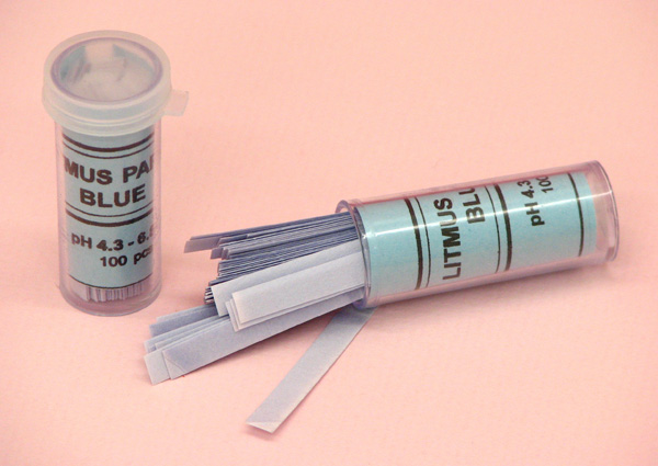Students can test solutions for acid determination. Easy-to-use blue litmus strip turns red for acids. 100 strips per vial.