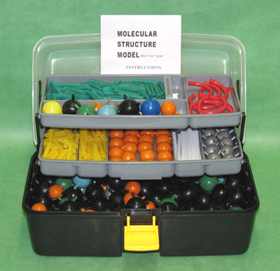 This molecular/atomic model set includes 174 balls (in 8 different colors) and 235 connectors (in 4 different colors). Easy storage in a 3-tier carry case with handle. Instruction Booklet included.