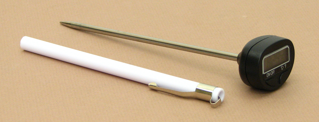 Multi-purpose fast reading probe thermometer. Stainless steel probe. Reads in both C and F. Supplied with protective sleeving for probe with pocket clip. Auto turn off after 10 minutes of non-use. Supplied with battery.