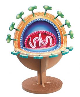 This teaching model is designed to introduce students to the structure of a virus. It illustrates the major components, with removable components that make lessons both challenging and fun. Grades 6-10.